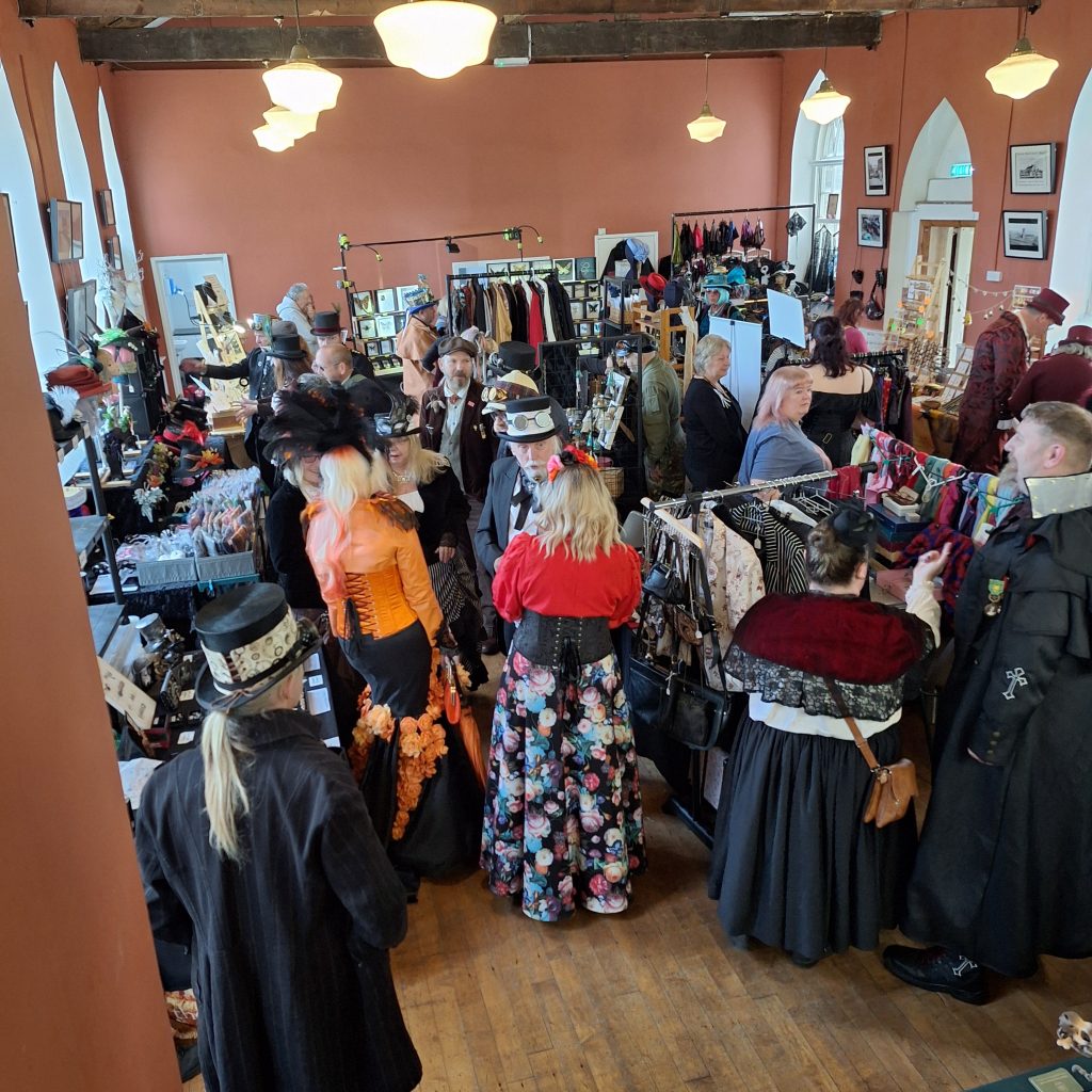Haworth Old School Room is an established trading base for the Steampunk weekend but also picks up passing trade from visitors to the Bronte Museum.