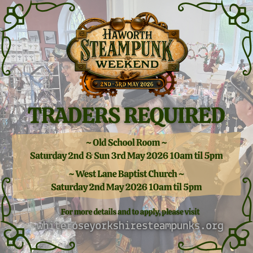 Steampunk and Local Craft Market: will be open at the Old School Room both days between 10am and 5pm and packed with Steampunk and craft traders offering everything from goggles to gears. In addition we have an extra market on Saturday at Haworth Baptist Church.